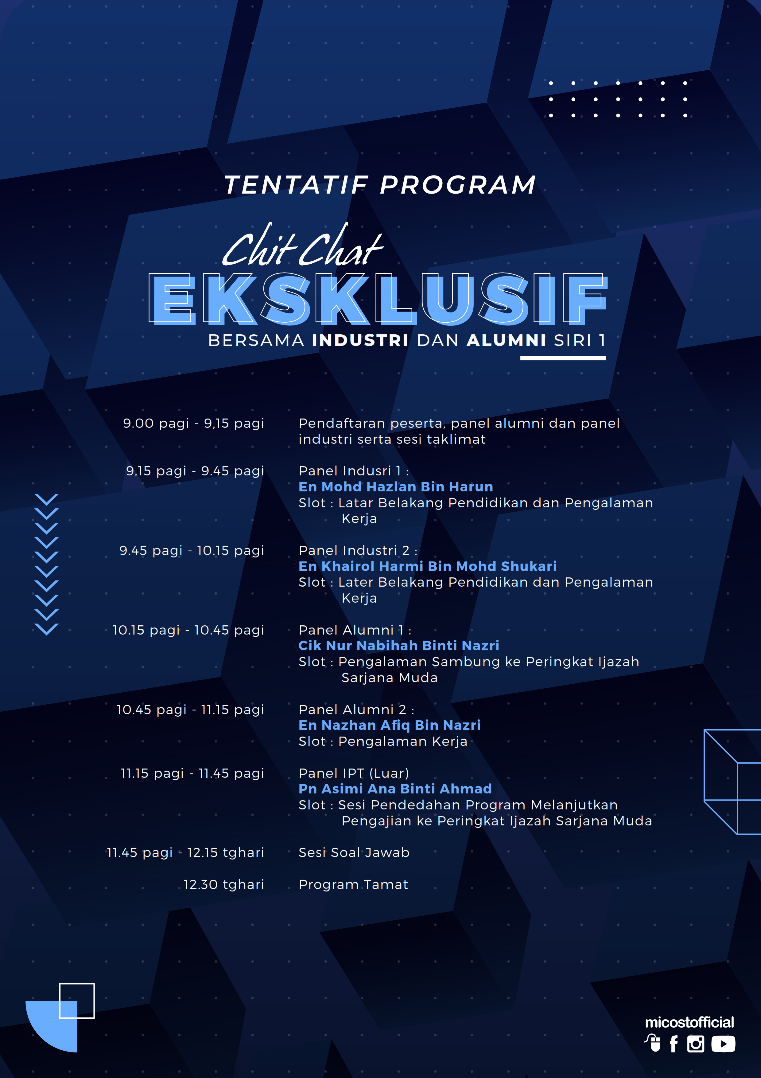 MAKLUMAN PROGRAM CHIT CHAT EKSKLUSIF BERSAMA INDUSTRI DAN ALUMNI SIRI 1
