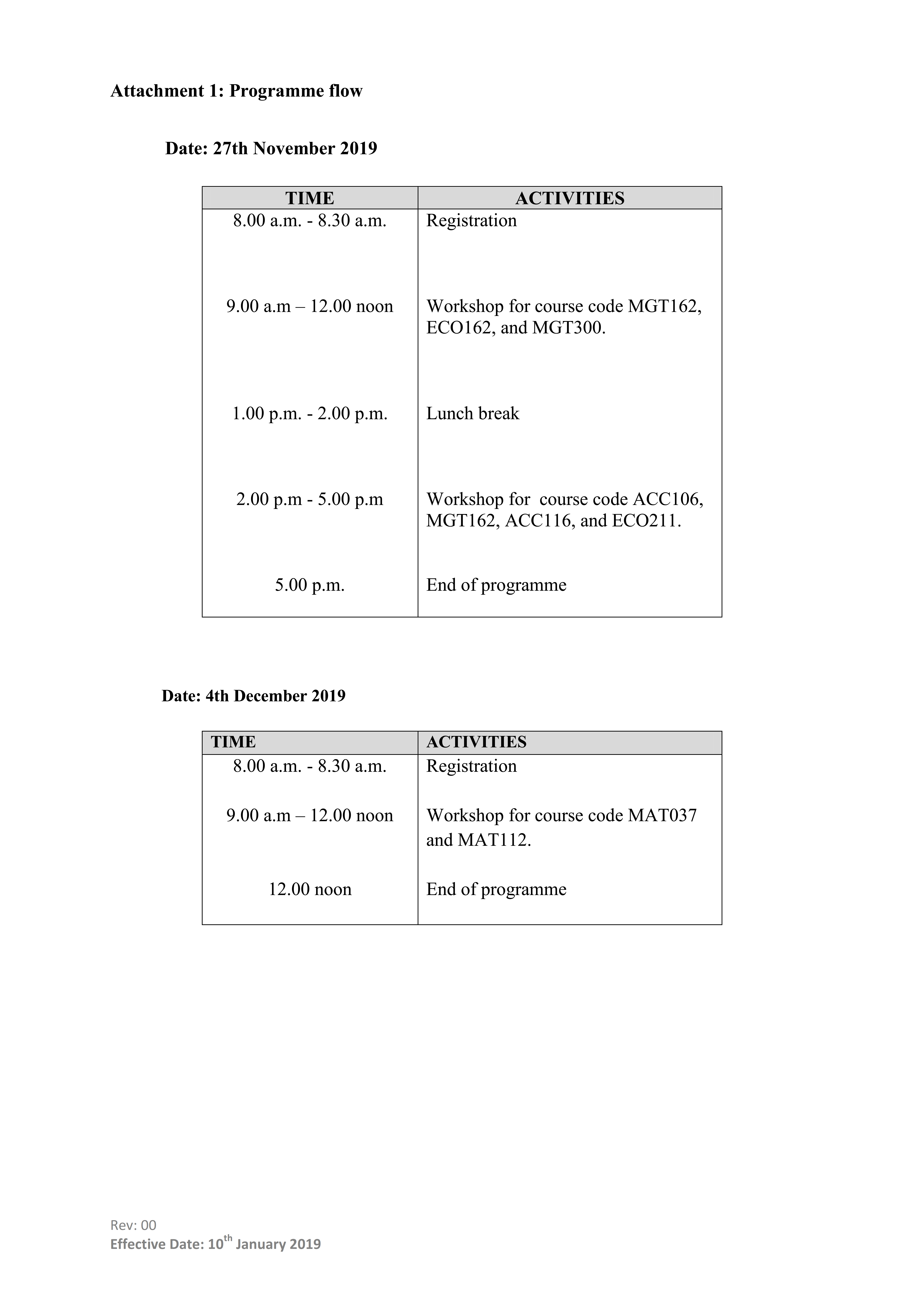 TIMETABLES